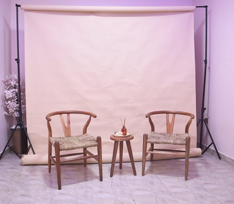A stylish, versatile space perfect for all your creative needs. With its soft pink walls and boho chic styling, this room exudes a trendy, modern vibe that’s ideal for everything from podcasting to fashion content creation. Whether you’re filming a GRWM video, capturing stunning editorial shoots, or recording your latest podcast episode, this space provides the perfect backdrop. The pink hue adds a touch of elegance, making your content pop, while the raffia chairs offer a cozy, natural aesthetic that complements any creative project.